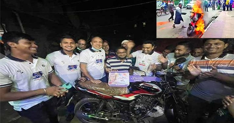 রাজধানীর বাড্ডায় নিজের মোটরসাইকেলে পেট্রোল ঢেলে আগুন ধরিয়ে দেওয়া সেই পাঠাও চালক শওকত আলম সোহেলকে বাইক উপহার দিলেন ছাত্রলীগের সাবেক…
